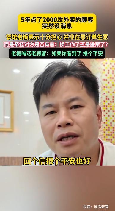 近日,佛山禅城一间餐饮店的老板吴先生求助,称有一位顾客5年内点了他家店的外卖两千余次,相当于一天起码点一次,甚至一天两次,但从去年开始,这名顾客就没有再下过单。