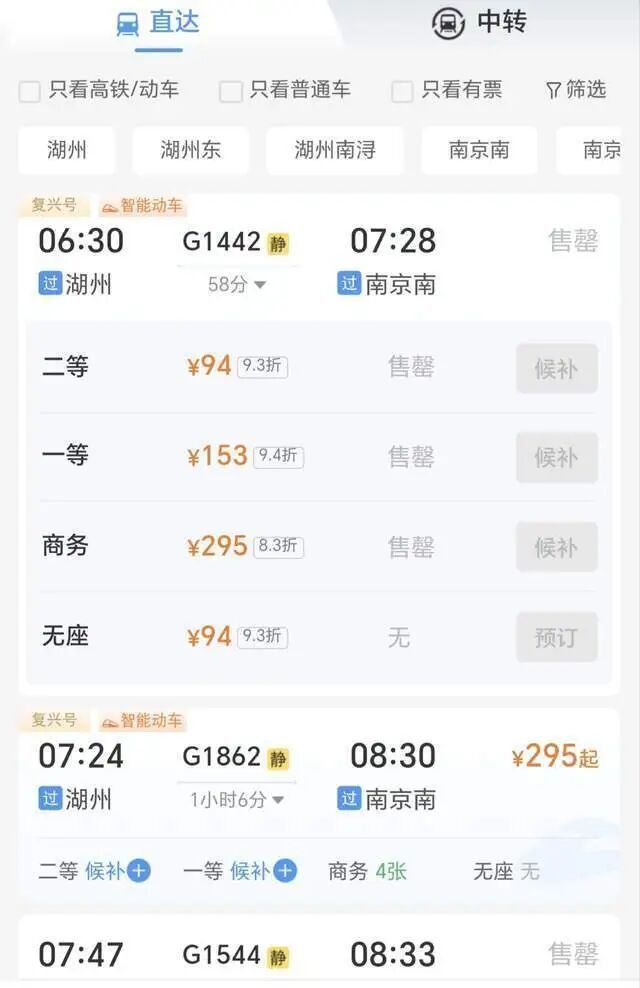 张女士的具体行程是湖州-南京南-恩施,连续数天抢票未果后,她开启了另一种购票方式。