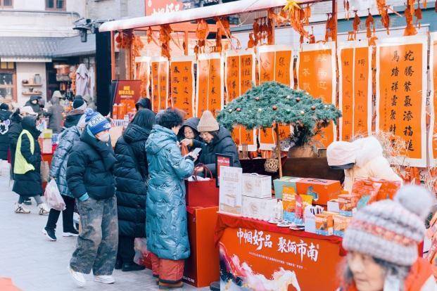 r市南区作为青岛市的核心城区,区妇联始终坚持守正创新,立足老城特色,在劈柴院街区这一历史文化地标举办首次大型综合性巾帼年货节,深度结合劈柴院街区的历史文化底蕴与商贸传统,成功打造了“商业+文化+体验”的新业态新场景,实现了文化传播与消费拉动的双向赋能。活动现场人气爆棚、亮点纷呈,尽显新春烟火气。三十多家参展单位集中亮相,涵盖“妇字号”企业、老字号品牌、非遗项目及本地特色商户,节令美食、特色手作、文创好物琳琅满目,全方位满足市民多样化的年货采购需求。