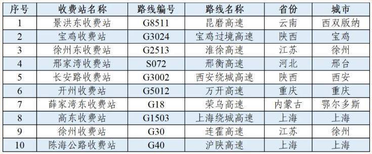 此次研判还明确了全国公路网易拥堵及重点服务点位。全国高速公路共有10条易拥堵缓行路段、10个易拥堵收费站,主要分布在湖南、湖北、江苏、广东等省份;武当山服务区、菩萨岗服务区等10个服务区为充电特别繁忙点位,相关部门将对这些区域强化交通疏导和服务保障。